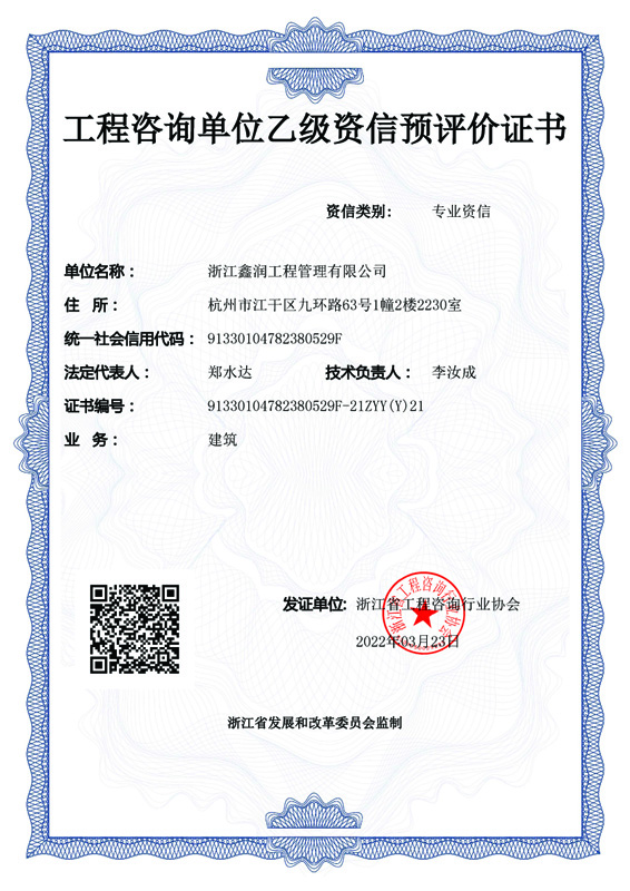 浙江鑫潤工程管理有限公司成立于2006年,經過多年的不斷開拓進取,現已發展成為一家涵蓋工程監理、招標代理、造價咨詢、工程設計等專業領域綜合實力雄厚的全過程工程咨詢服務企業。具有建設部頒發的房屋建筑工程監理甲級資質、市政公用工程監理甲級資質、工程造價咨詢甲級資質、招標代理甲級資質及工程設計、景觀設計、工程施工、工程咨詢、人民防空、機電安裝、物業管理等相關資質。